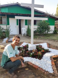 Outro fato muito importante no início da construção foi a instalação da água. Meu pai, Seu Miguel, foi o responsável por trazer a água do rio até as torneiras no terreno, instalando bombas e fazendo o encanamento necessário. Também nos ajudou com seus conhecimentos em construção geral, como parte elétrica e com algumas manutenções gerais na igreja. Deixo aqui meu agradecimento ao meu Pai, por toda dedicação durante esse tempo que estamos aqui.